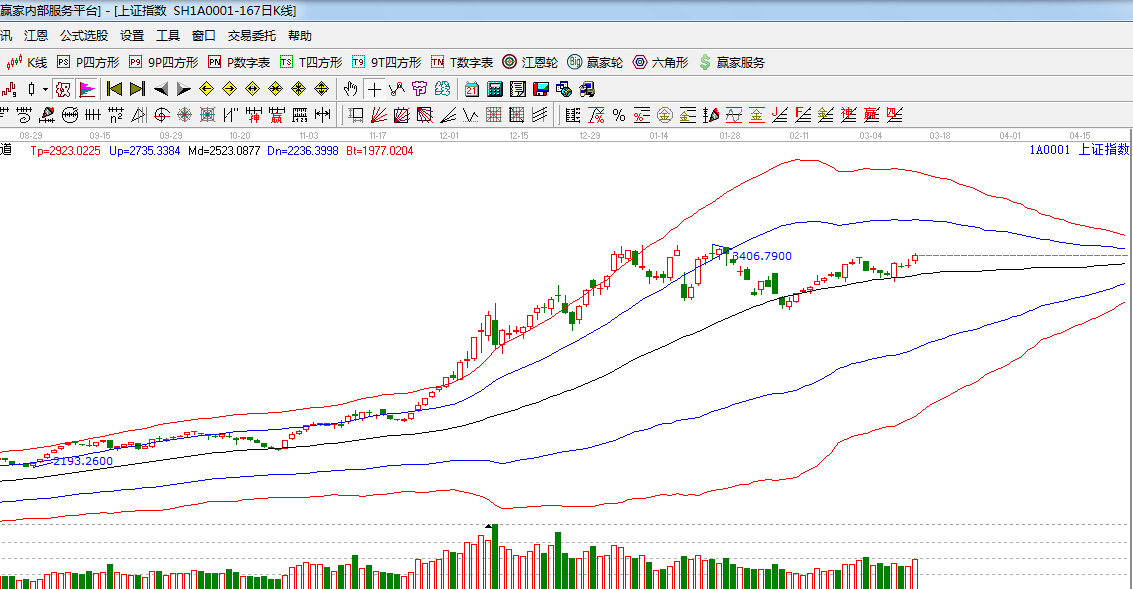 江恩看盤綜述:依據(jù)贏家江恩技術工具分析得出:周四滬指在金融權(quán)重的帶動下大幅拉升,創(chuàng)業(yè)板外軌線如期遇阻回落,已在預期之中,整體盤面上,呈現(xiàn)金融權(quán)重股獨舞,題材股走勢則不太樂觀,市場震蕩格局并未打破,下一時間窗口留意17日附近,操作上,勿盲目追漲,逢低布局國資改革、年報超預期個股。