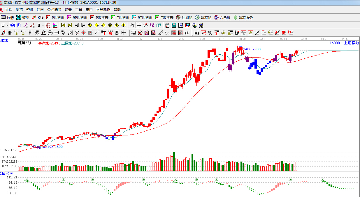 ☆依據(jù)贏家江恩理論系統(tǒng)能量買賣提示:紅色能量柱與前期呈現(xiàn)背離走勢,多空轉(zhuǎn)換節(jié)點,謹慎為主。