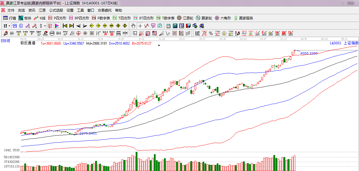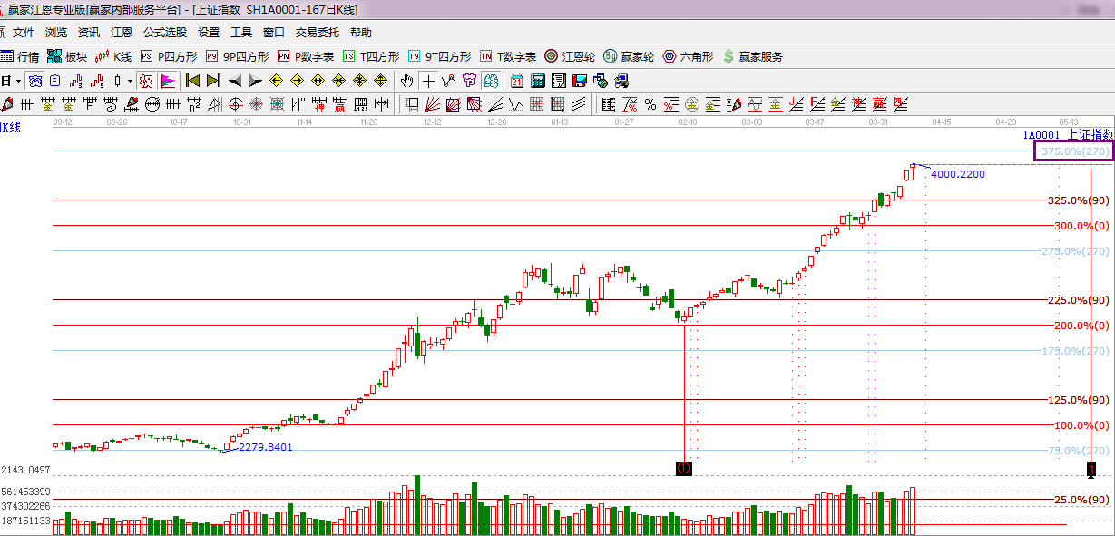 江恩看盤綜述:依據贏家江恩技術工具分析得出:今日滬深兩市早盤出現寬幅震蕩走勢,盤中跳水下探3900點后再次上行,午后一度沖擊4000點大關,整體盤面依舊強勢,市場近期連續上漲積累了過多的獲利盤,加之下周新股申購凍結資金2.5萬億左右,市場將迎來大考,依據江恩工具分析,本月一重要阻力位是江恩270度4081點附近,所以操作上,在享受利潤奔跑的同時保持一種謹慎的態度,逢盤中急漲,要理性對待,切莫盲目追高。