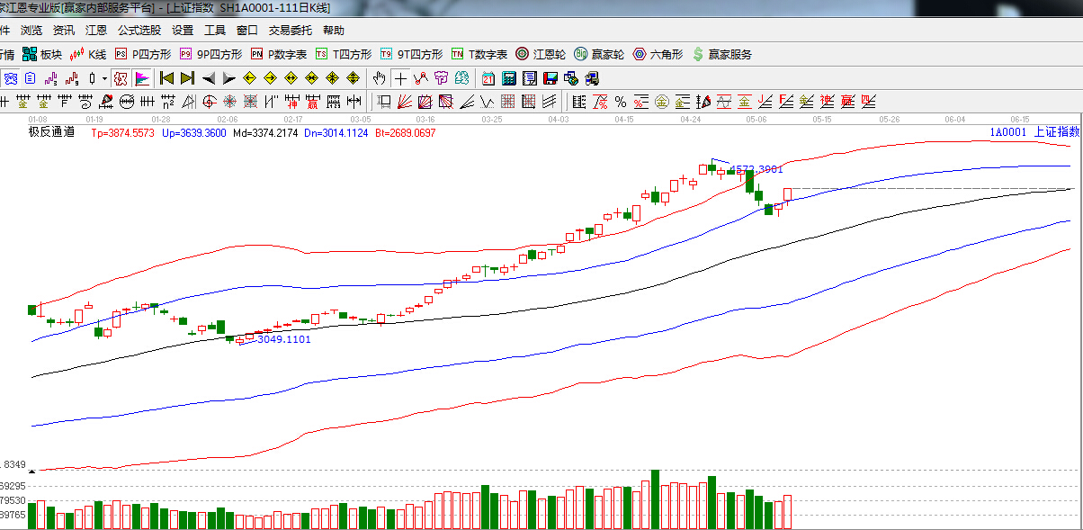 極反通道提示:滬指重新藍色外軌線,回踩外軌縣不破,看多。