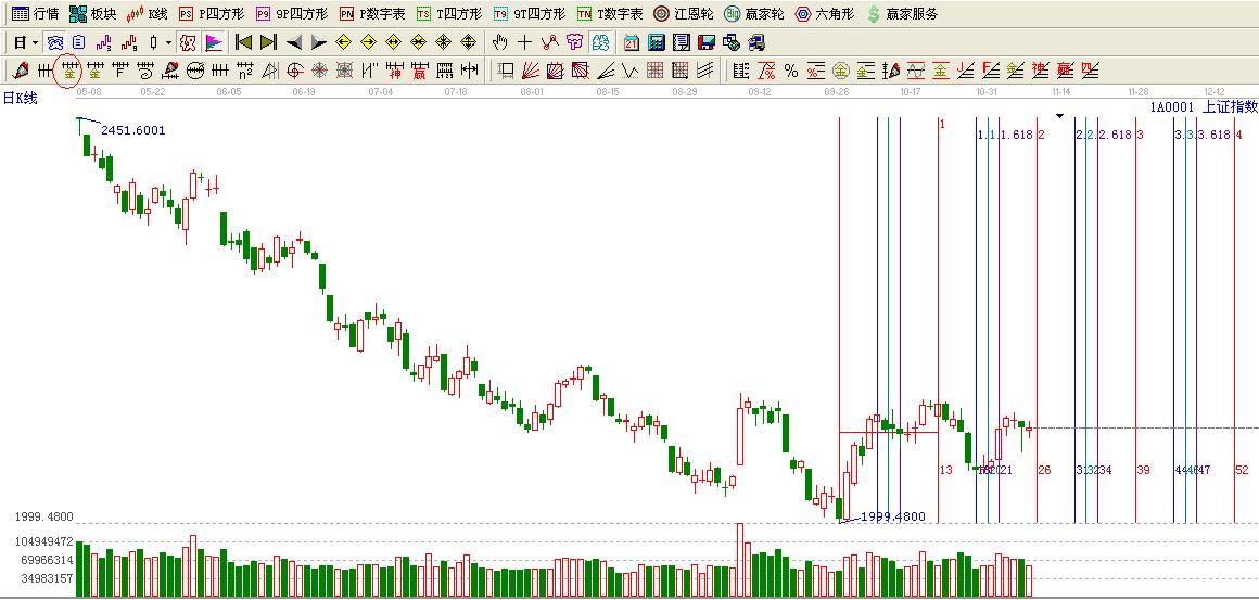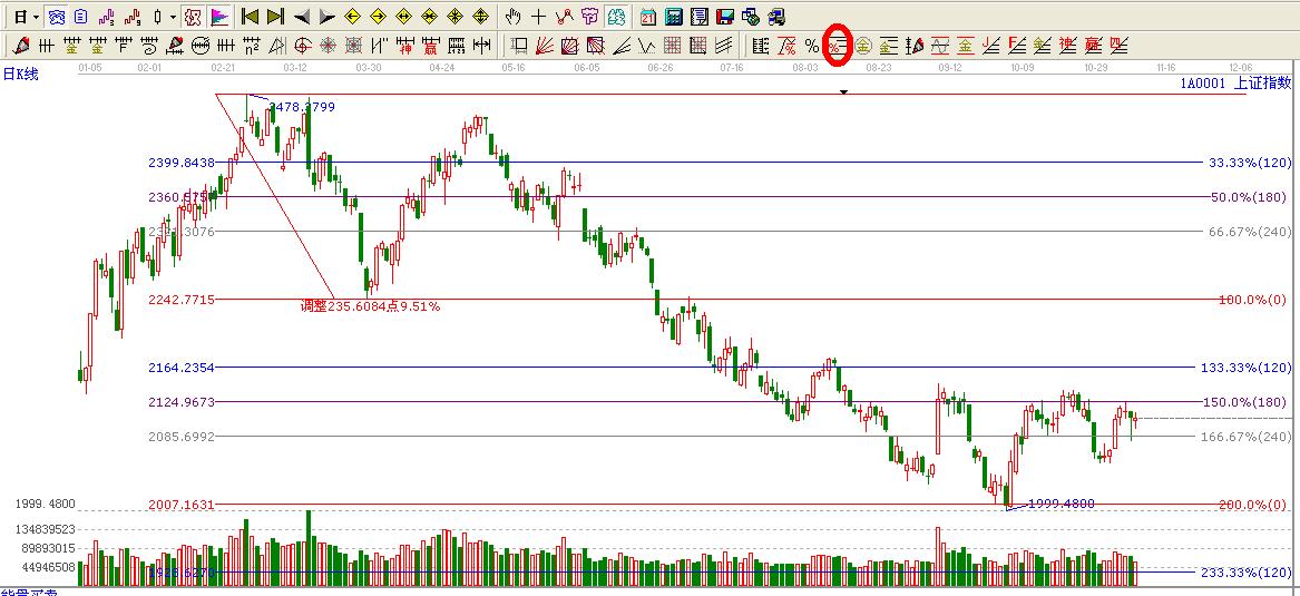☆依據贏家江恩系統波段百分比延伸線延提示:大盤短期壓力180度2125點下方支撐240度2085點。短期不能選擇方向依然震蕩為主,只有突破180度位置才會打開上行空間