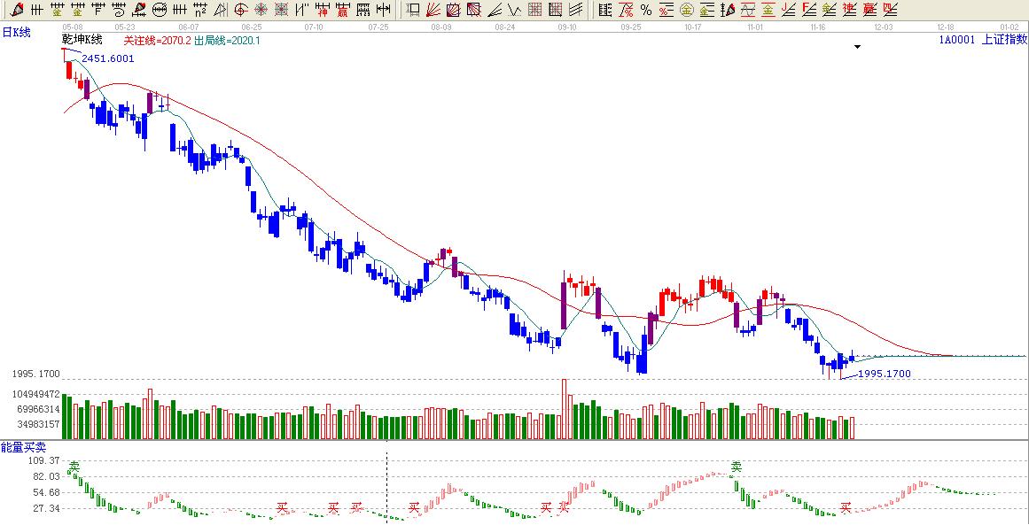☆依據贏家江恩系統乾坤k線提示:大盤還是處于藍色區域,看空信號。
