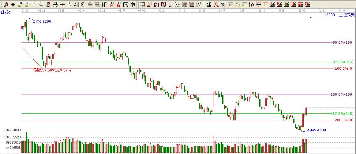 大盤一路凱歌一口氣站穩315度后在一次拉出了近1.60%的陽線突破了極反通道生命線,周五再一次出現普漲格局,漲停家數達到44家。