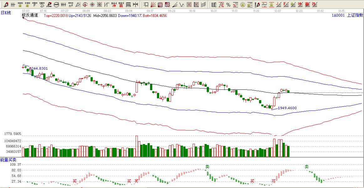 ☆依據(jù)贏家江恩系統(tǒng)極反通道提示:大盤極反通道生命線下方,看空。