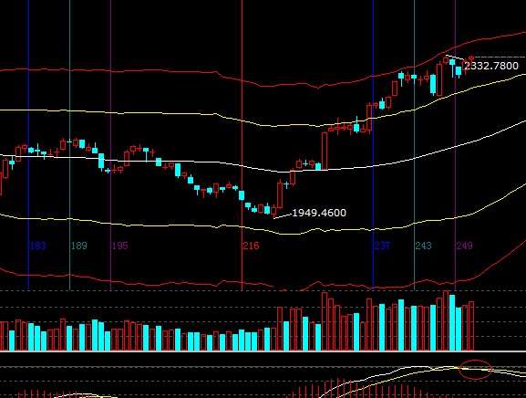 指數維持高位震蕩,各周期運行在生命線以上強勢區域,MACD高位已出現死叉跡象,依據規則應不斷提升止損位保護收益,或通過工具做差價降低成本,短期支撐2285-2295,阻力2326-2335;