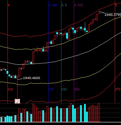 伴隨著量能放大A股再創新高,短周期延續黃色外軌線震蕩指標進入調整期,注意調整對利潤的吞噬,整體趨勢做多觀點不變,可通過提升止損位保收益或倉位上做高拋低吸降低成本,短期支撐2395-2405,阻力2435-2448;