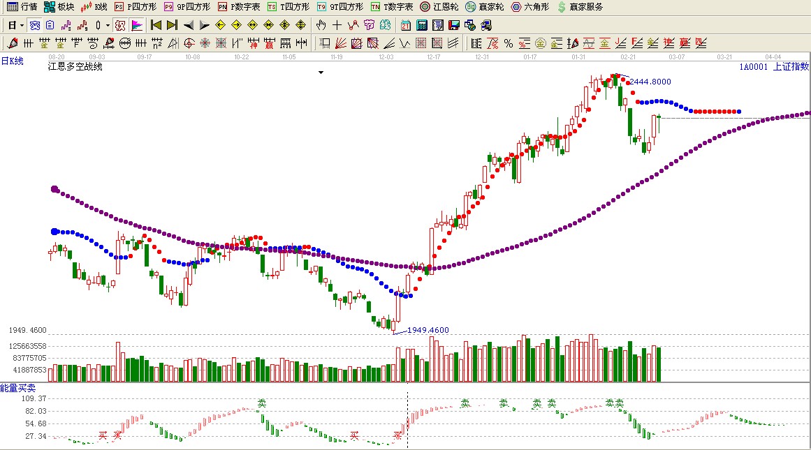 綜上所述:大盤處于極反通道生命線2294.90點附近,按照極反通道應用法則極反通道生命線不破看高一線至2442點藍色上軌位置。
