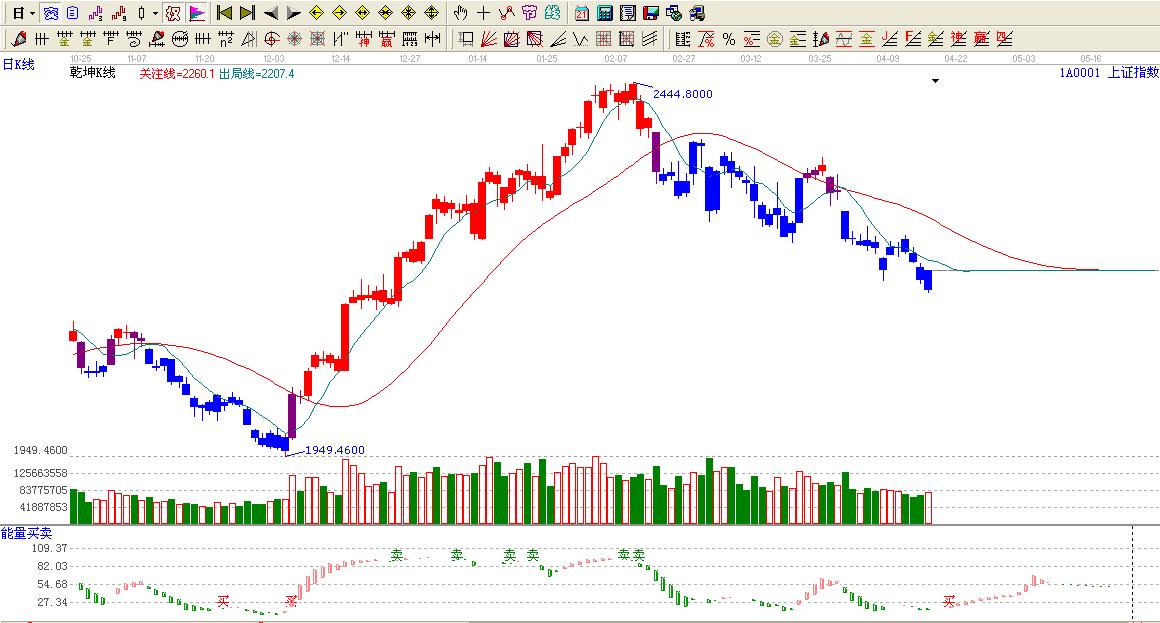☆依據(jù)贏家乾坤k線提示:大盤處于藍(lán)色區(qū)域內(nèi),看空。