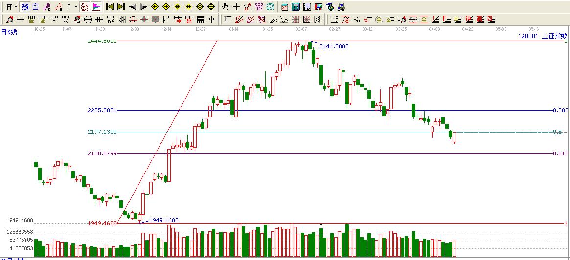 ☆依據(jù)黃金價(jià)格回調(diào)支撐位提示:大盤1949.46點(diǎn)至2444.80點(diǎn)回調(diào)目前處于0.5位置2197.13點(diǎn)下方,只有上行至0.5位置上方才會(huì)觸摸0.382位置2255.58點(diǎn)。