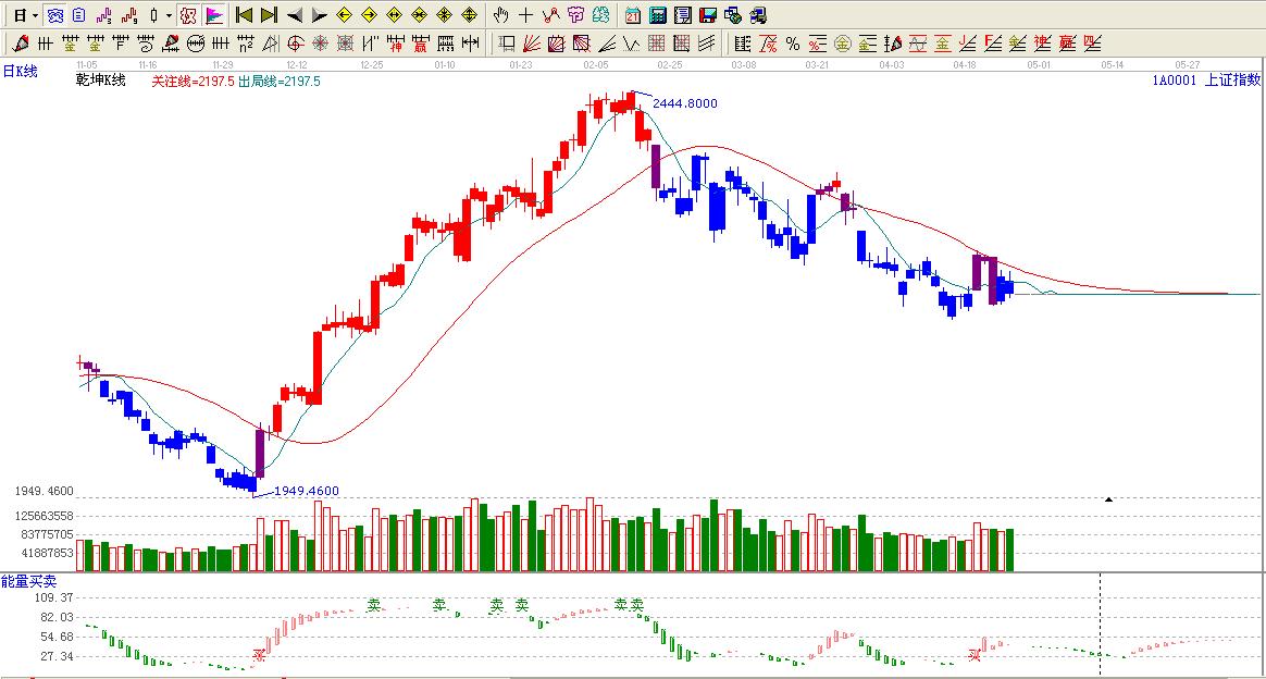 ☆依據贏家乾坤k線提示:目前大盤處于藍色區域,依然處于出局線下方運行,按照規則, 看空做空。
