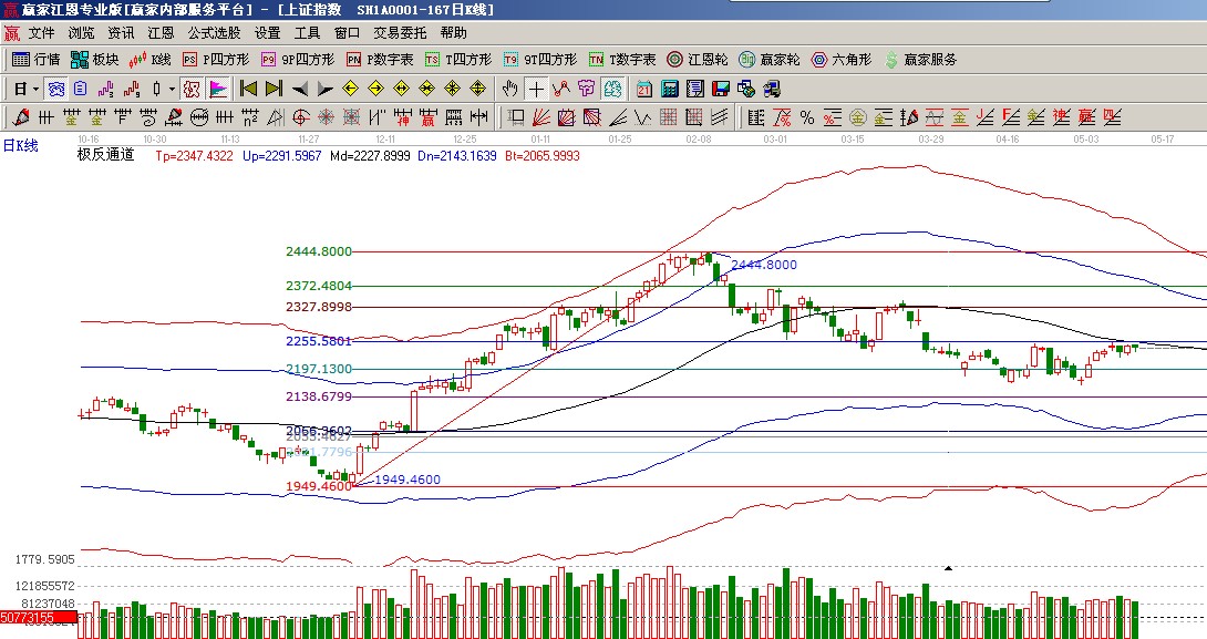 ☆依據(jù)贏家江恩系統(tǒng)極反通道提示:4天小陰小陽運(yùn)行在生命線下,未有標(biāo)志性K線突破生命線前看空;