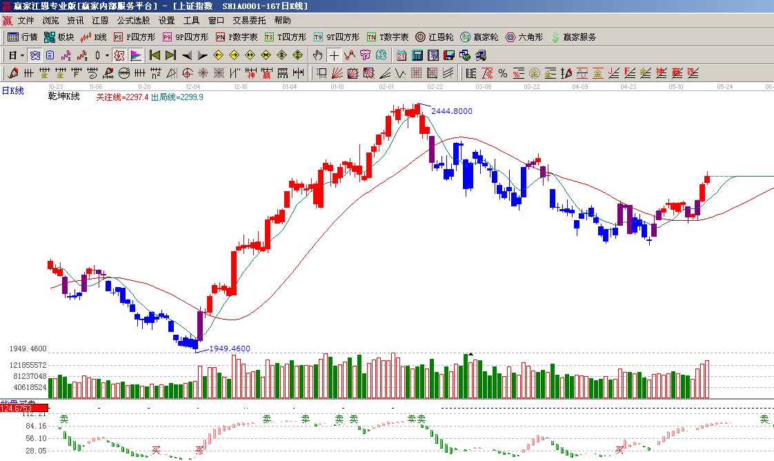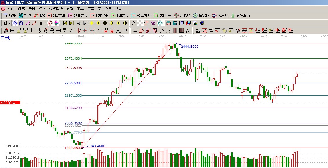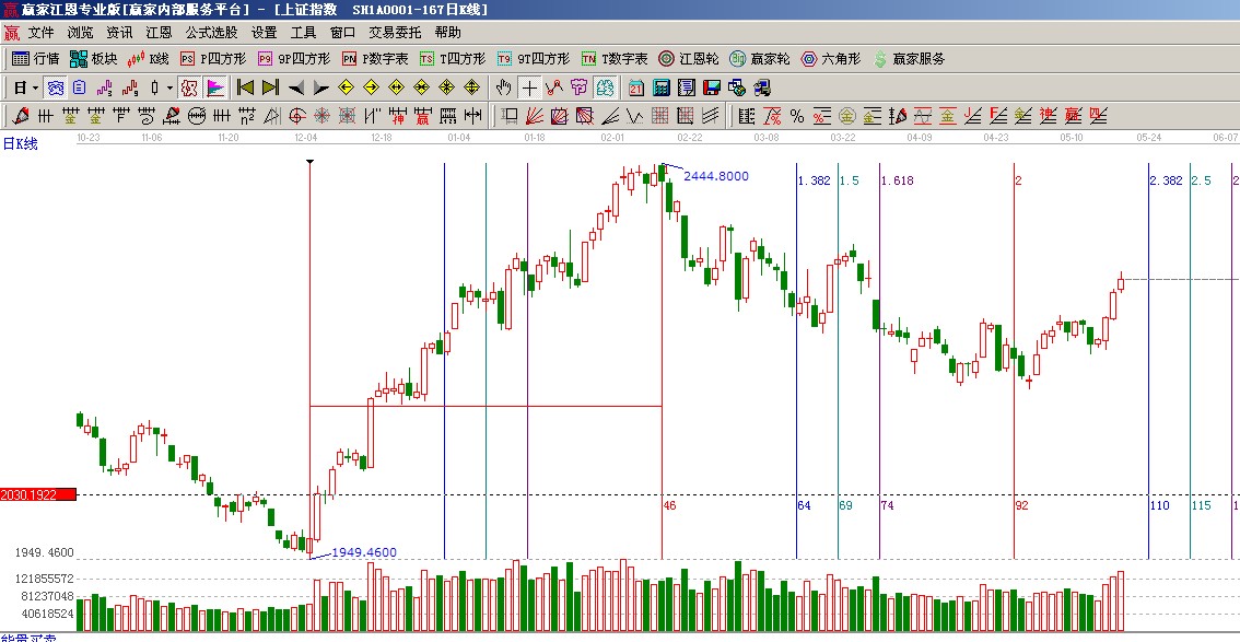 ☆依據黃金時間周期線提示:從1949點至2444點做時間圖(3),5月23號為時間窗;