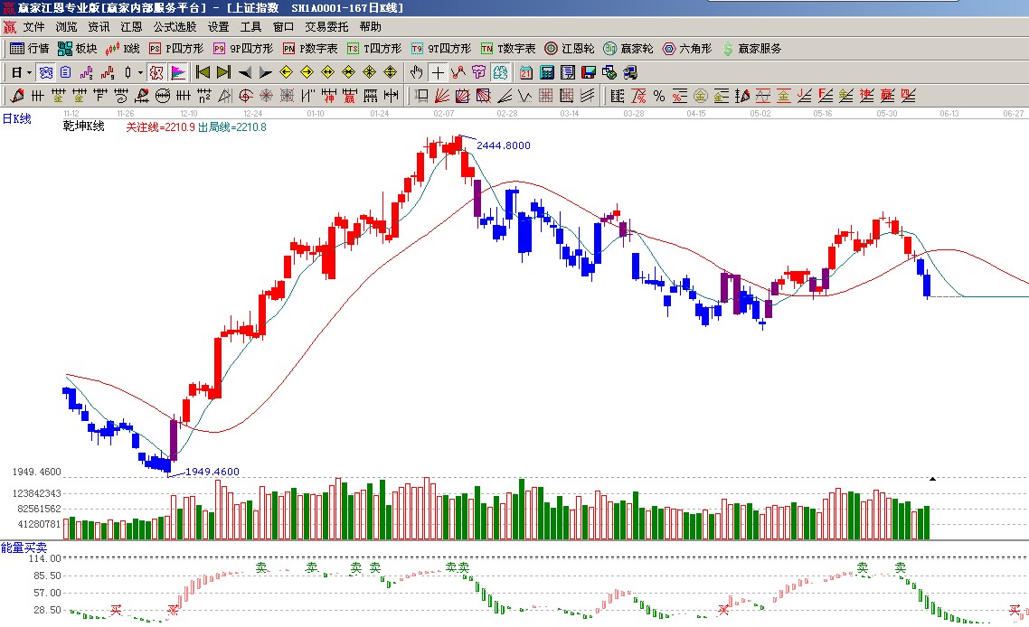 ☆依據(jù)贏家江恩系統(tǒng)極反通道提示:指數(shù)跌破多空分水嶺生命線轉(zhuǎn)入弱勢(shì)通道,依據(jù)規(guī)則看空,逢高做空;
