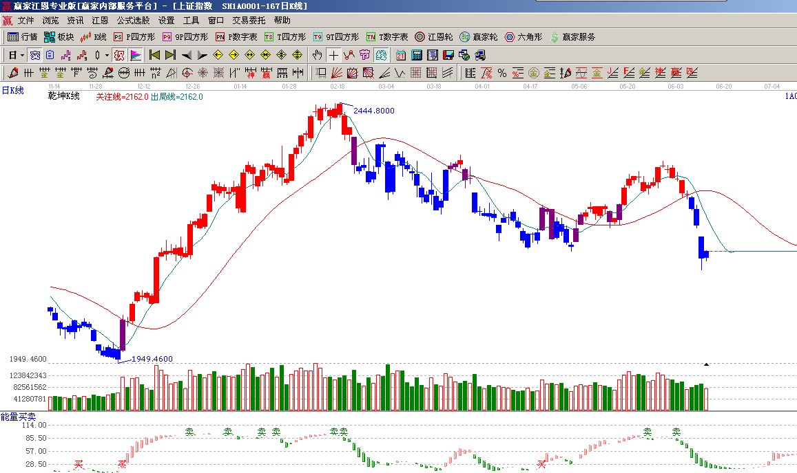 ☆依據贏家江恩系統極反通道提示:K線處在弱勢通道懸空位置,短周期休息指標后不能扭轉弱勢局面,指數仍將面臨回踩弱勢外軌線概率,逢高做空;