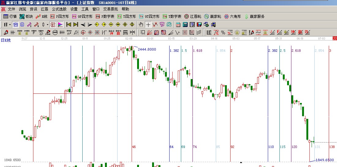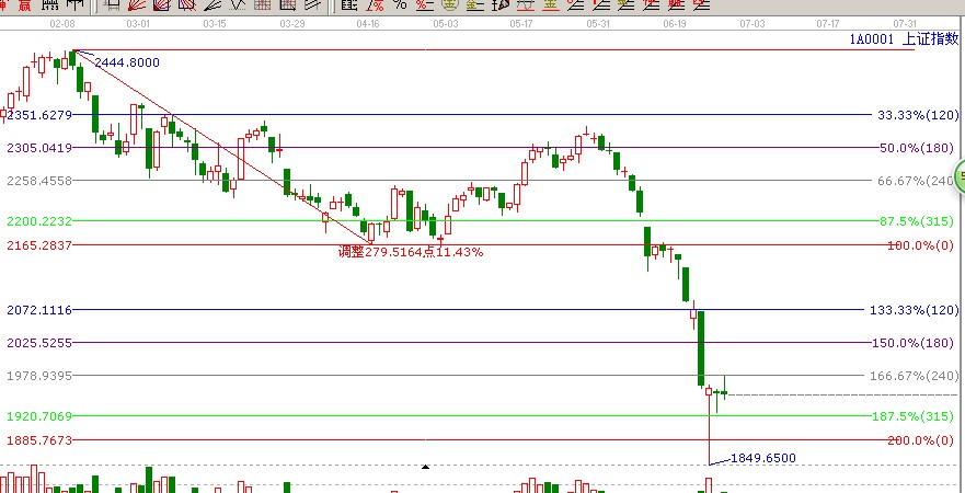 ★依據贏家江恩系統波段百分比延伸提示:自2478至2242做圖,支撐位是三分之一位置1925點,阻力位是零度位置2000點(2);