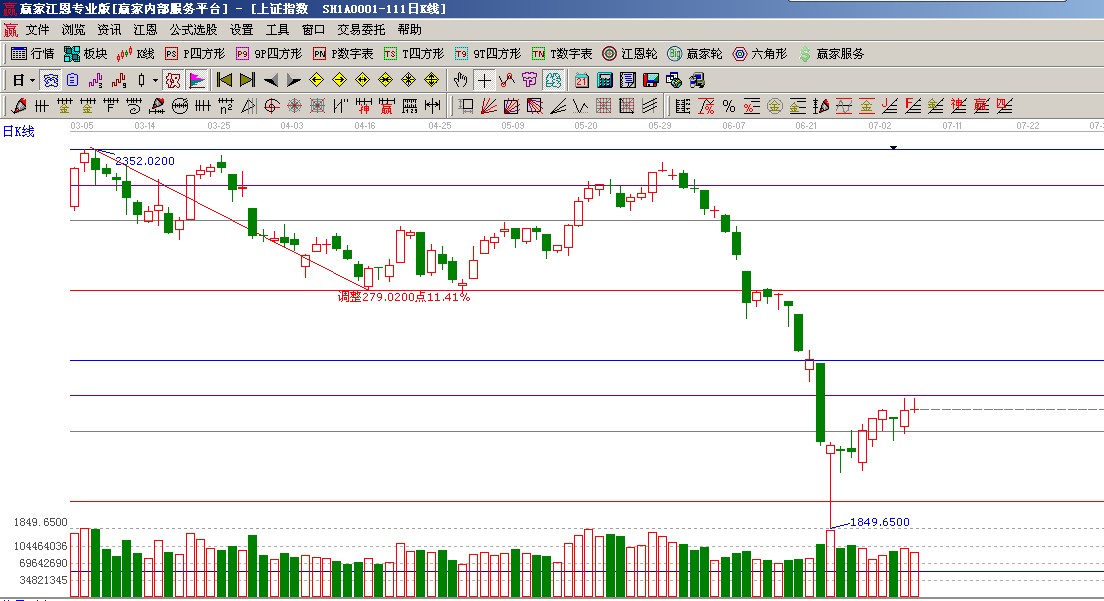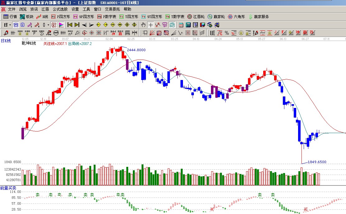 ★依據贏家江恩系統波段百分比延伸提示:自2478至2242做圖,早盤兩次下探240度支撐位是1979點隨后拉起,阻力位是零度位置2025點(2);