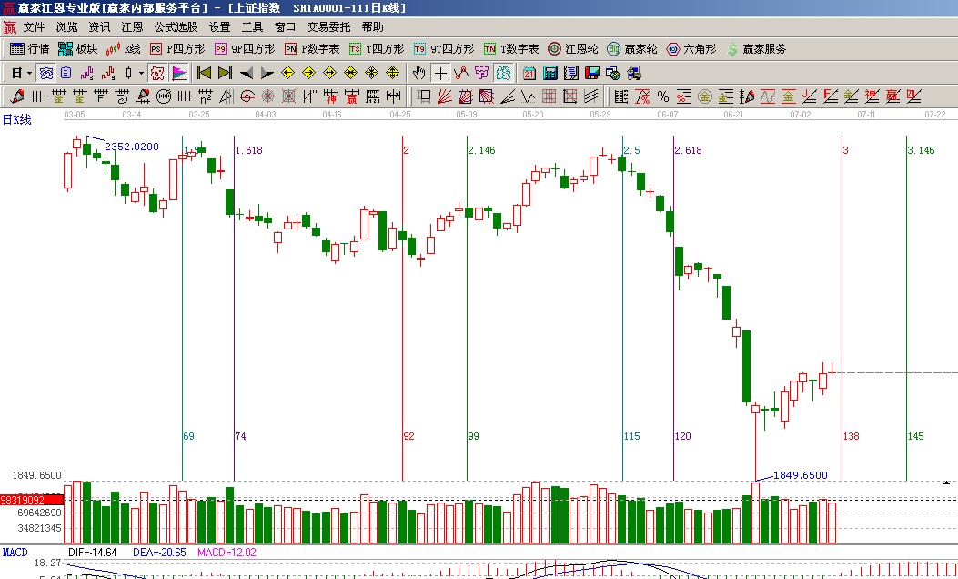 ☆依據贏家江恩系統乾坤K線提示: K線運行在短短期出局線上午,震蕩修復關注線隨后是大的方向選擇;(1);