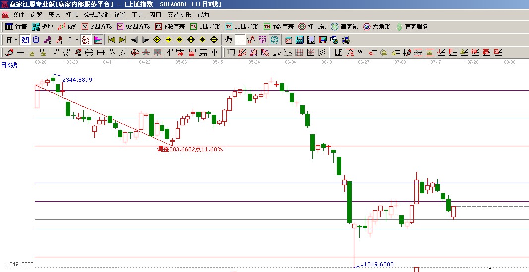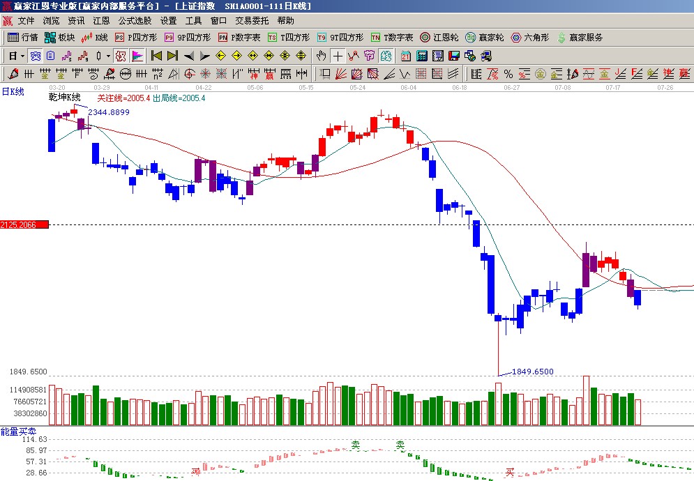 周末受央行放開貸款利率影響,金融地產帶動下大盤低開1個點隨后震蕩攀升回補缺口,板塊方面計算機應用、通信服務、概念類如4G、傳媒娛樂表現良好,兩市共有54只個股漲停,1只跌停;技術圖形當前A股走勢圖形符合前期課程中講的MACD精解里弱勢買入信號,因處在弱勢需要繼續觀察量能與技術圖形、指標的配合,因此策略上激進者回探1950-1970試探性建倉,突破2025加倉否則到此位置獲利出局,穩健者仍以休息為主;