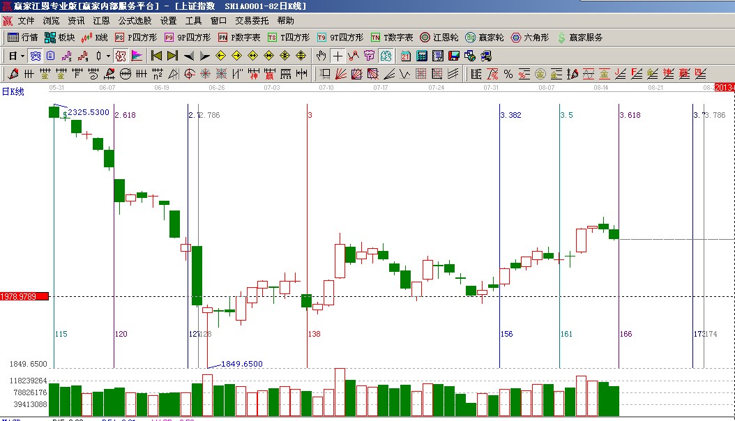 ☆依據贏家江恩系統極反通道提示:失守15分鐘生命線跌到30分鐘生命線位置,明天早盤確認后將展開對15分鐘的修復,隨后市場將一一對較大周期的生命線進行確認;