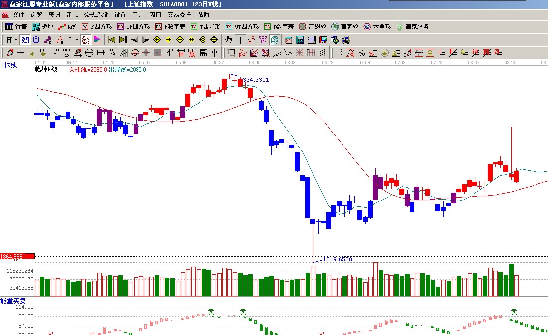 ★依據贏家江恩系統乾坤K線提示:K線反抽短期出局線,整體K線為紅色安全操作區(1)