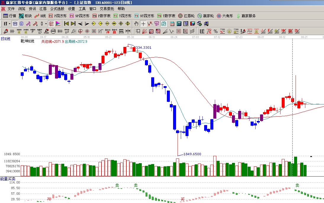 ☆依據(jù)贏家江恩系統(tǒng)能量買賣提示:空頭占據(jù)優(yōu)勢,出現(xiàn)賣出信號;(1)