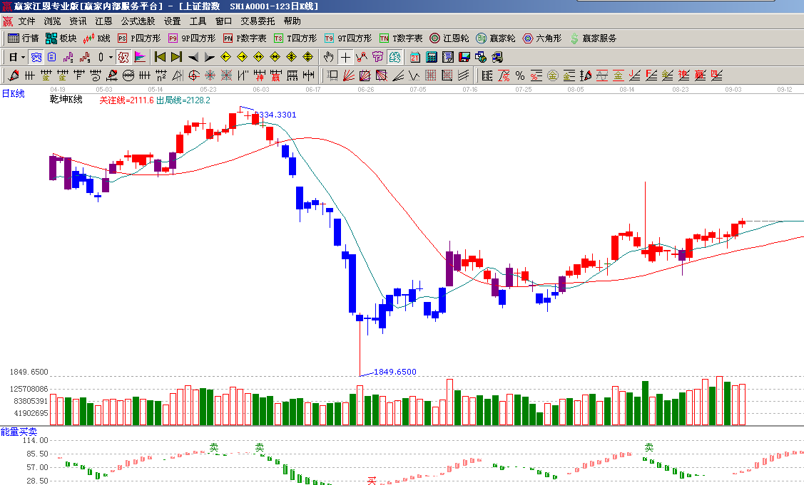 ★依據(jù)贏家江恩系統(tǒng)能量買賣提示:多頭當前占據(jù)優(yōu)勢,主現(xiàn)紅色柱子;(1)