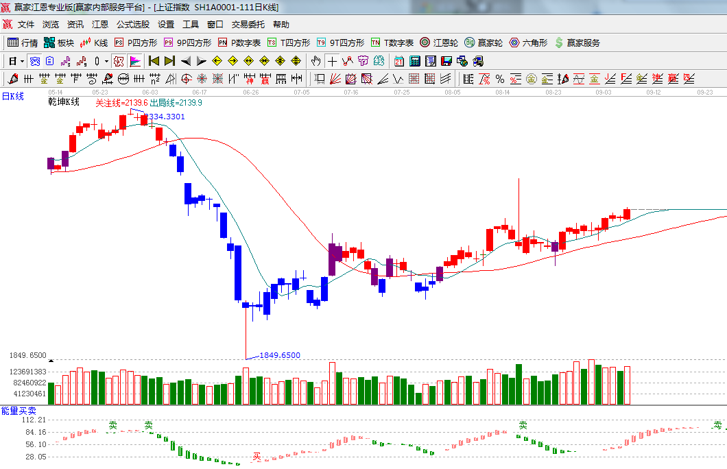 ★依據贏家江恩系統乾坤K線提示:出局線、關注線保持其頭并進,策略上以持股為主;(1)