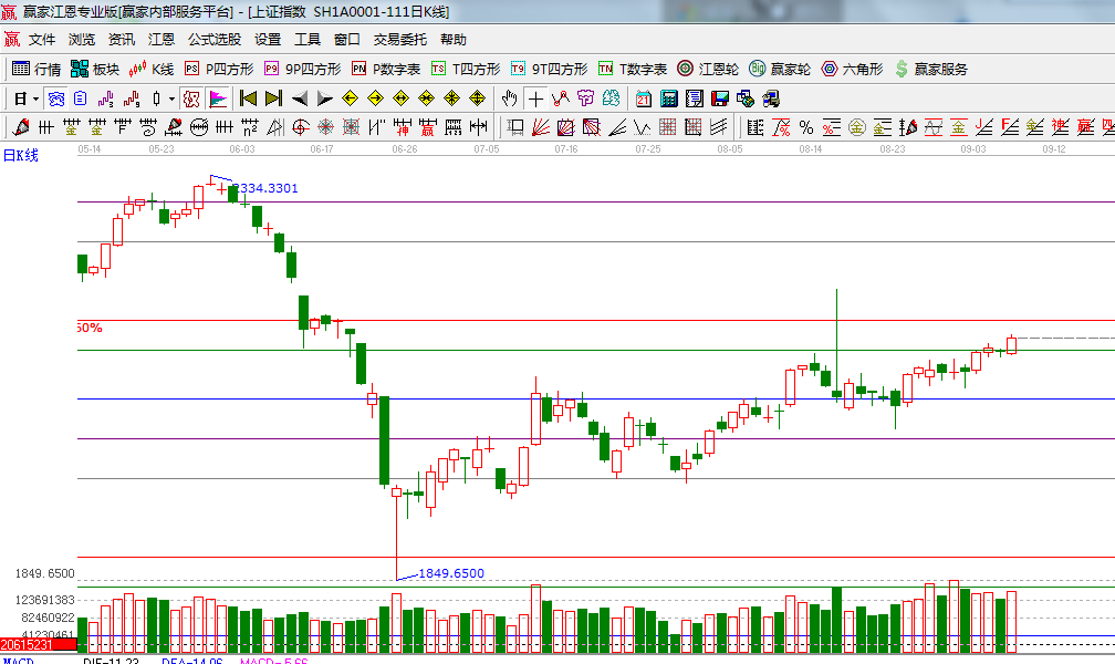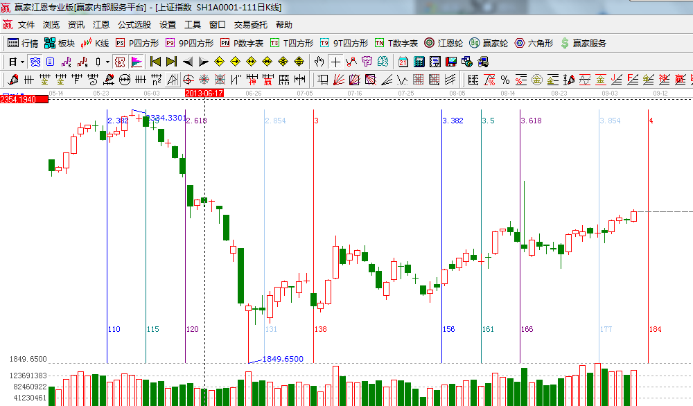 ☆依據贏家江恩系統波段百分比延伸提示:本周最大的拋壓指向是前期5月份市場反攻的底部,上攻的路程將更加曲折;(2)