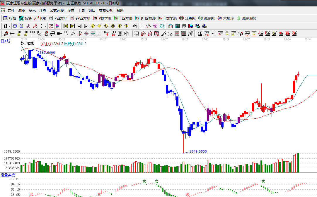 ★依據(jù)贏家江恩系統(tǒng)乾坤K線提示:K線遠(yuǎn)離短期出局線會(huì)有對(duì)此線的修復(fù),整理K線處于安全操作區(qū)策略上以持股為主;(1)