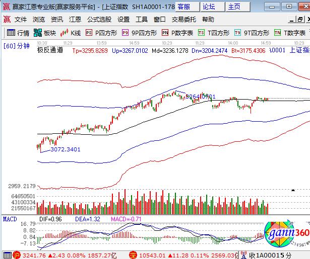 ?周三大盤延續窄幅震蕩態勢微漲,深成指同樣勉強收紅,創業板微跌,幾大指數表現平淡。板塊方面,家電、建材、煤炭、釀酒等漲幅居前,保險、銀行、券商小跌;題材方面,次新、高送轉、基因活躍,莊股橫行,網安、人工智能、云計算領跌,個股跌多漲少成交量同前日持平。技術方面,兩顆十字星在極反通道生命線外軌線半空中震蕩,短周期60、30、15在生命線上方附近震蕩,下方江恩百分比90度及生命線是支撐,上方135度和外軌線是壓力位,投資者關注好指數上下波動至工具提到的點位做對應的減加倉動作,3211、3200為日內支撐,3253、3260為日內阻力,僅供參考,不構成任何投資建議。