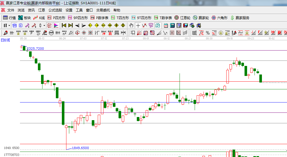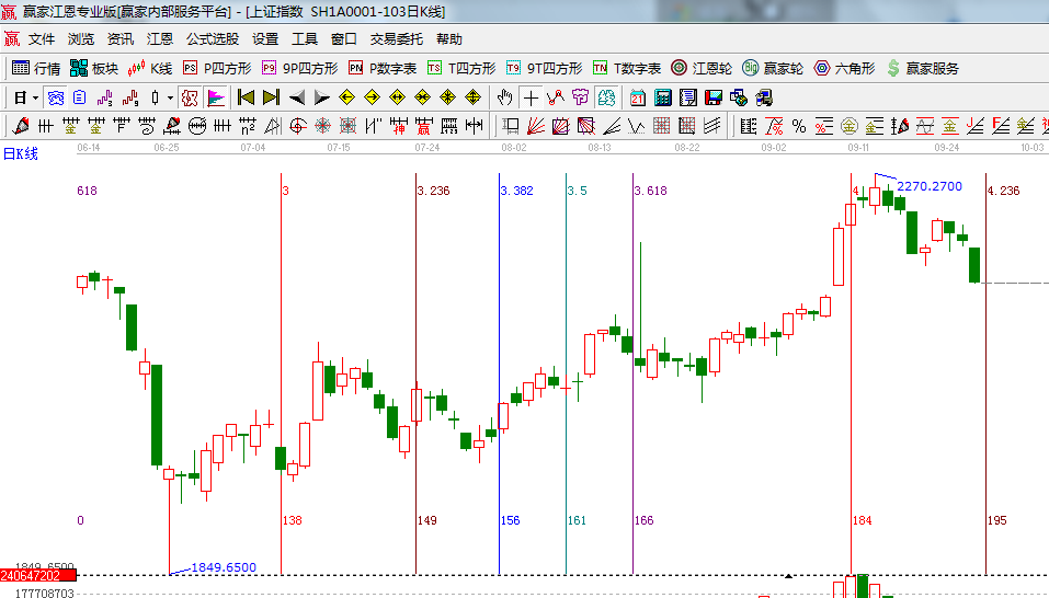研究歷史預測未來是江恩理論代名詞,贏家江恩系統則是依據江恩理論的核心理論自然規律而研發,一直以來直觀的通過工具理性的分析判斷指數、個股的走勢,近期指數的走勢一步步的在安著分析預判的運行,如昨天分析所談到60分鐘生命線2195的失守將展開日線的正式調整,市場今天破位后出現快速下跌,這種格局要持續到節后的一周左右的時間里才會有所緩解,因此操作上放慢節奏,權重股的調整將指數帶動下來,為后期上攻拉空間,虧損過多的個股不需要出局,做出減倉尋找機會補倉;假期前還有兩個交易日,假期效應會再現;