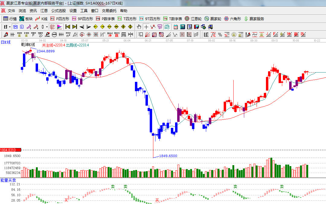 今天是日線的時間窗口,兩市圍繞日線外軌線展開震蕩整理,收陰十字星,盤面上,醫療保健,物流、電力領漲大盤,創業板個股繼續回調,權重股持續低迷,今天成交量比昨日有所減少,依據贏家江恩工具分析,短期阻力位極反通道藍色外軌線2257點,此區間市場資金表現謹慎,操作方面穩健者適當回避風險,明天延續弱勢震蕩概率偏大。