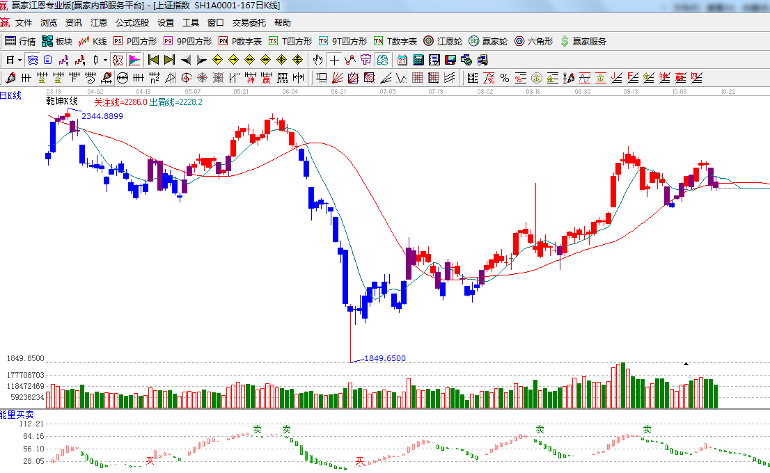 指數延續下跌趨勢以小陰線報收,綜合當前各方面因素可得出預判市場的調整將是以緩跌開展,短周期15分鐘再下探將會形成背離,仍以盤中反抽方式修復指標,長周期周線判斷生命線位置是2150附近,這區域也是日線生命線的位置,政策方面十八屆三中全會將于下個月上旬召開,一些政策支持將帶動板塊的輪翻上攻熱點不會缺失;時間方面注意下周三時間窗口與極反通道的關系;