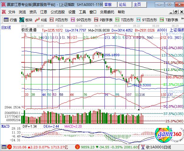 大盤上周五呈現窄幅震蕩微漲,深市幾大指數下跌,創業板最弱大跌1%,權重和題材都是分化行情。板塊方面,僅銀行板塊小漲,石油、保險、券商小跌;題材方面,次新股領漲,環保、蘋果、OLED概念領跌,個股漲跌互現,成交量萎縮。技術方面,日線收盤站在江恩百分比零度線以上,上方45度與極反通道生命線是上行阻力,短周期15、30、60分鐘進入生命線以上安全操作區域,離外軌線有上行空間,預計本周后半周以震蕩上攻向日線生命線靠攏。整體倉位保持在5成,3097、3085為日內支撐,3128、3150為日內阻力,僅供參考,不構成任何投資建議。