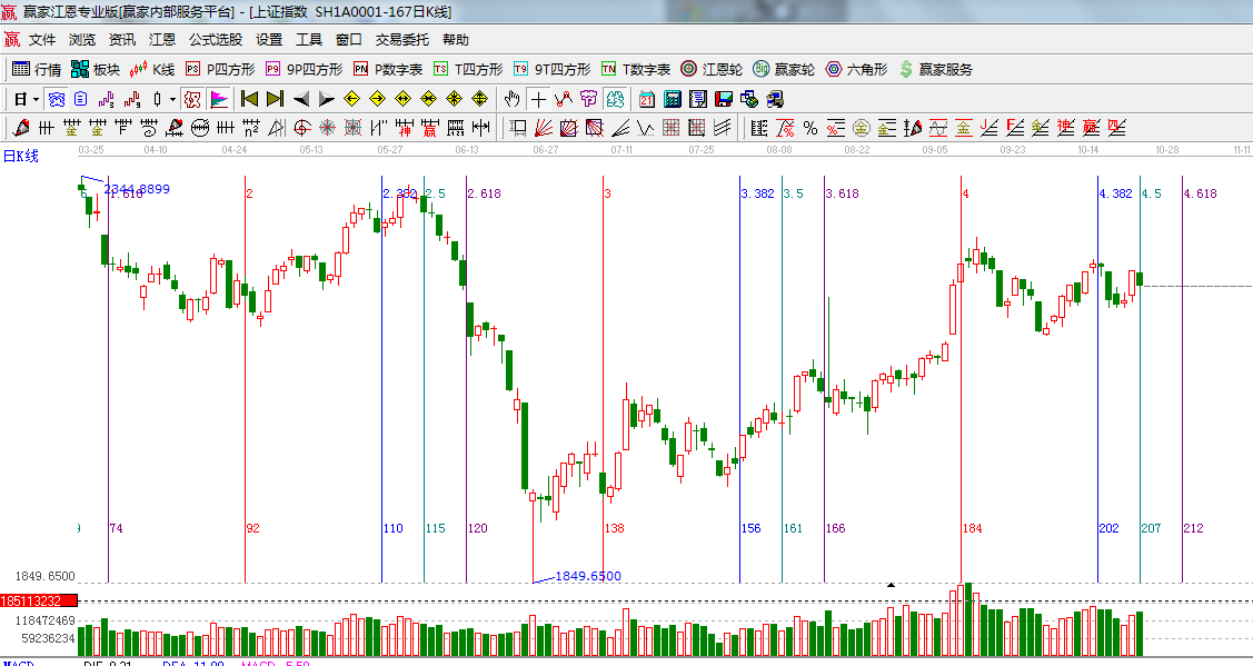 ★依據贏家江恩系統乾坤K線提示: 紫色K線轉為紅色,短期有轉好跡象信號;