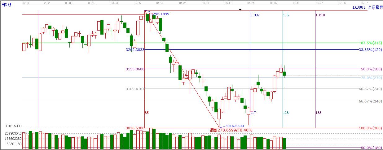 依據贏家江恩技術工具分析得出:周一,6月12日時間窗口,滬指遇阻回落收陰,在增量資金不足下,回調需求盡顯,明日繼續考驗3135點支撐。不破維持高位震蕩,切勿追漲,破位有機會回落江恩240度線3109附近。短期指數回調仍是低吸上車的良機,尤其是超跌的中小板,將再次迎來低吸周期,可重點關注中報業績預期良好的超跌標的。