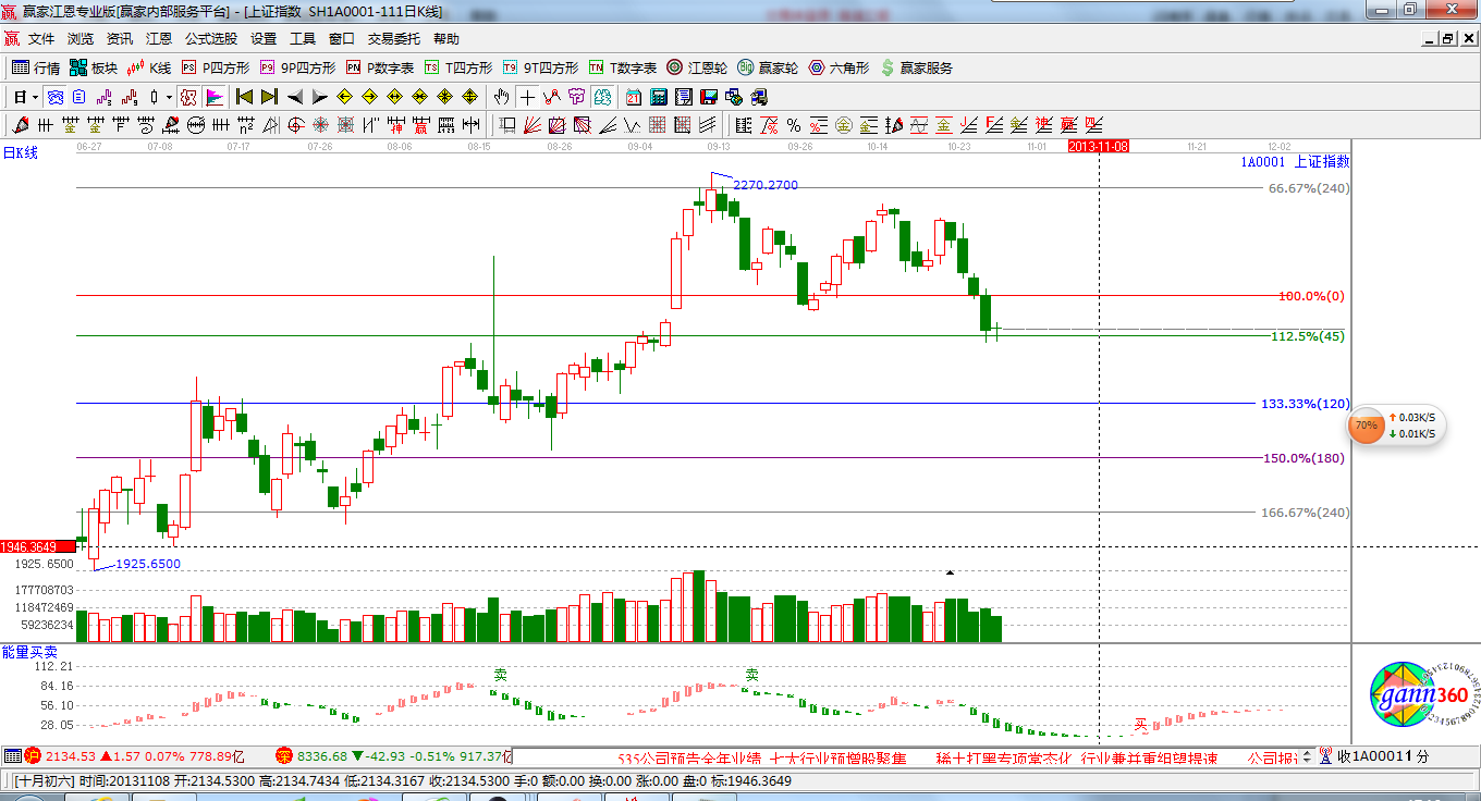 ★依據贏家江恩系統波段百分比延伸提示:江恩百分比45度是2125;