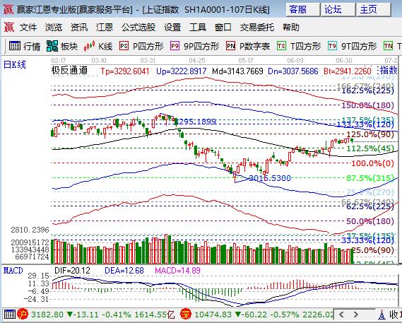 周二大盤低開低走小幅放量下跌0.41%,上證50大跌帶動兩市主板指數走弱,幾大指數全線小跌。板塊方面,石油大漲1%,釀酒、鋼鐵、家電、地產、有色等領跌;題材方面,開板新股、無人零售和中報預增概念局部表現,基因、資源鈷和稀土永磁領跌,個股跌多漲少成交量較前日略微放大。技術方面,滬指進入提示時期窗,短周期生命線共振合力無熱點支撐,反彈力度減弱,短期順勢整理調整不改波段向外軌線上攻的目標,同時大盤調整空間最多1%左右,昨日早盤已提示漲幅過大的個股應適當減倉,倉位調配到有業績支撐低價股上面,操作策略保持短線、波段結合不變,倉位保持在5-7成,3172、3165為日內支撐,3192、3204為日內阻力,僅供參考,不構成任何投資建議。