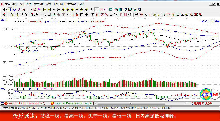 【贏家江恩點評:極反通道工具可幫助用戶解決大盤或個股趨勢判斷、價格買賣點,在日內(nèi)差價高拋低吸方面更能提示其優(yōu)勢。】