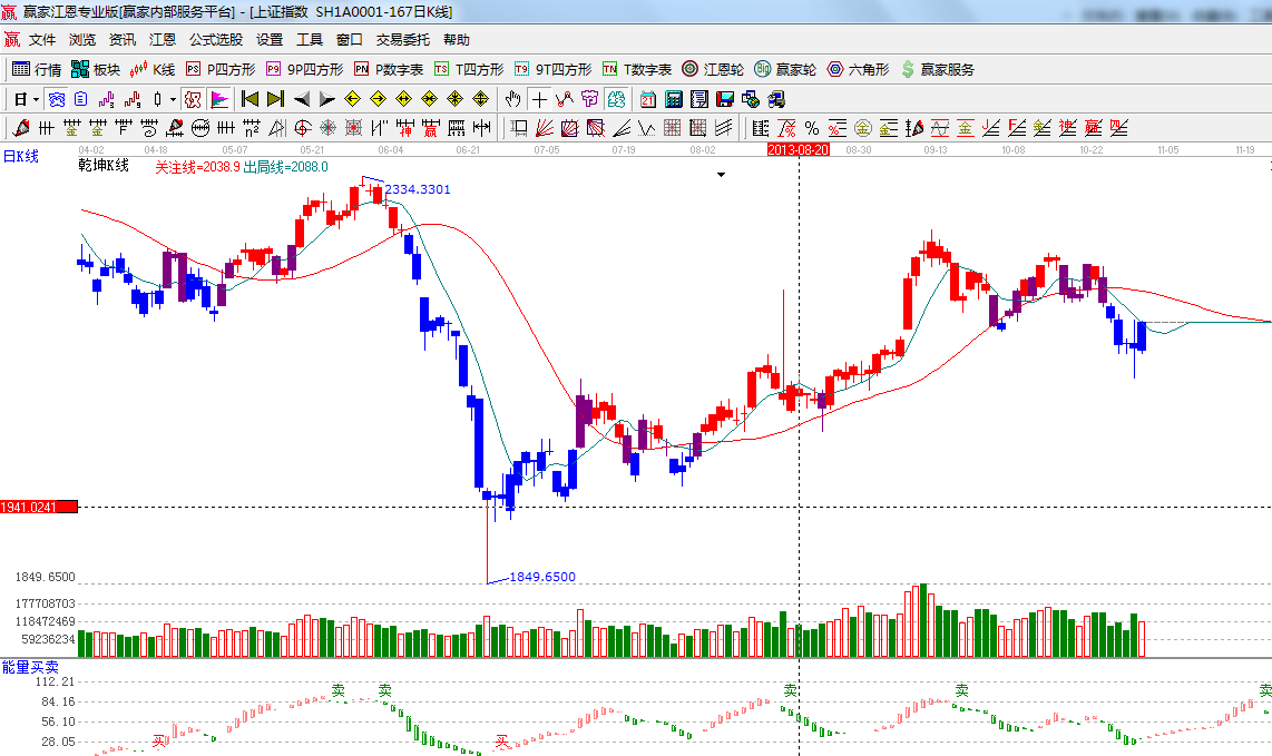☆依據(jù)贏家江恩系統(tǒng)能量買賣提示:空頭綠色柱子縮短,有翻紅的跡象;