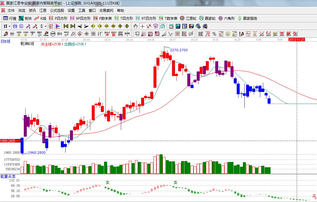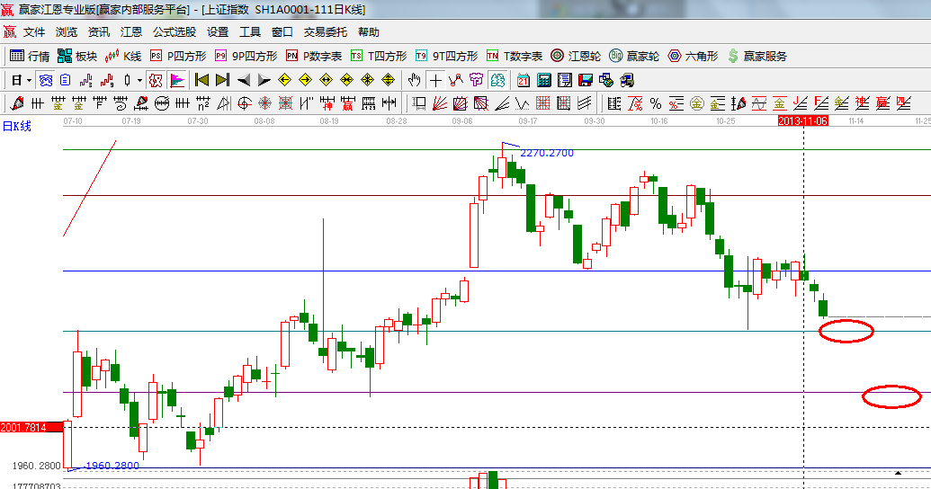 咨詢:13333833889指數(shù)遇到黃金分割周期線所分析的時(shí)間窗后選擇下行,十幾天的縮量橫盤小平臺(tái)宣告失敗,那么價(jià)格上通過極反通道與江恩百分比得出在2050附近,本周日線的時(shí)間窗是13號(hào),整體趨勢(shì)、均線系統(tǒng)、MACD指標(biāo)都在弱勢(shì)區(qū)域,操作思路上則以空倉(cāng)休息或輕倉(cāng)持股為主,操作時(shí)所挑選品種圍繞改革涉及到的行業(yè)為主或有事件推動(dòng)因素的概念股;