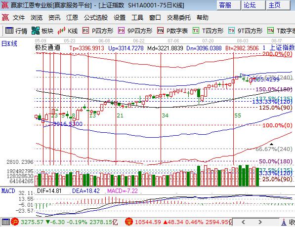 周三大盤低開震蕩收帶長下影線的陰線,深強滬弱,深市幾大指數全線小漲,創業板沖高回落。板塊方面,煤炭、食品、釀酒、有色、鋼鐵和家電藍籌領漲,銀行、券商和保險大金融領跌;題材方面,稀土永磁、小金屬漲價概念強勢,豬肉、軍工及開板新股領跌,個股漲跌互現成交量萎縮。技術方面,滬指日線江恩百分比240度3288點依然是盤中反抽阻力,短周期60分鐘生命線3264點如失守,則將引導小周期15、30和日線下探,依據工具規則,極反通道日線生命線有望止跌,8月中下旬不易頻繁交易,等待安全的參與信號,倉位控制在4成以內,3264、3250為日內支撐,3288、3300為日內壓力。僅供參考,不構成任何投資建議。