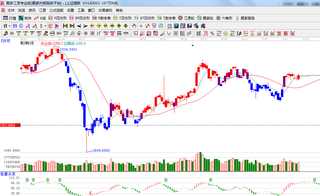 ★依據(jù)贏家江恩系統(tǒng)能量買(mǎi)賣(mài)提示:多方量能紅色柱子有所縮短,注意觀察盤(pán)中量能變化;