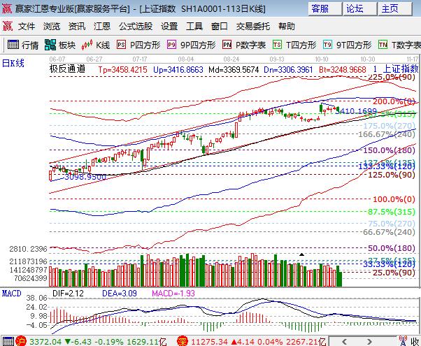 大盤周二低開回踩江恩百分比線后收綠十字星,創業板領跌但跌幅不大,僅深成指勉強收紅,兩市成交量再度大幅萎縮。板塊方面,保險、中石油小漲,有色、鋼鐵、券商和銀行板塊領跌;題材方面,次新、房屋租賃、物流和蘋果概念盤中表現搶眼,稀土、鋰電和人工智能領跌,個股漲跌互現。技術方面,日線百分比315度3370此位置的支撐有效性將要被市場考驗,短周期15、30分鐘生命線下弱勢區域運行,假如日線此位置失守,則向生命線靠攏的概率將增加,盤中關注60分鐘生命線3360-3370(百分比線)得失,決定了市場是震蕩上行至外軌線還是下行至生命線,倉位上中線倉保持在4成,短線倉3成,3365、3356為日內支撐,3381、3392為日內壓力。僅供參考,不構成任何投資建議。
