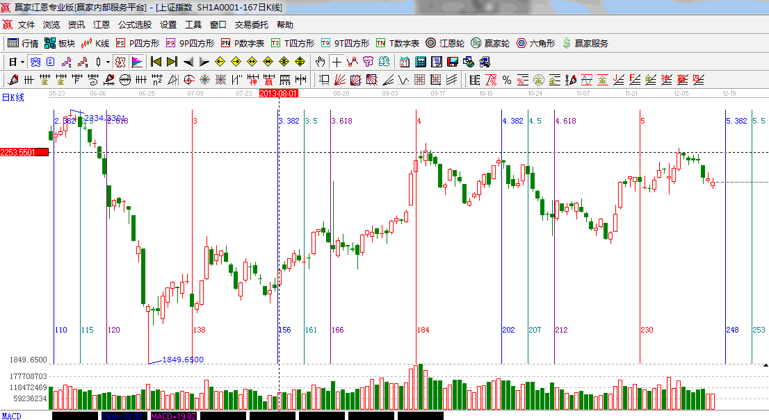 ★依據(jù)贏家江恩系統(tǒng)黃金時間周期線提示:17號為黃金分割的0.382的位置,重點觀察日線k線形態(tài);
