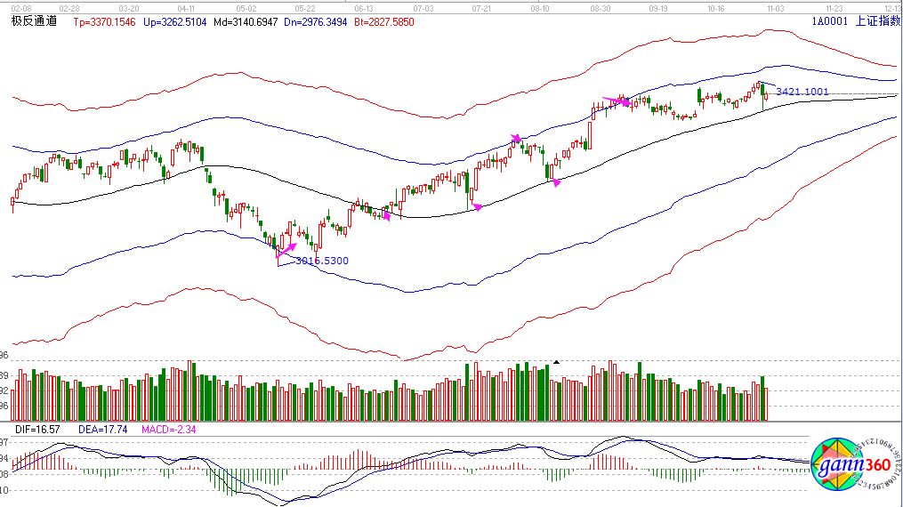 【贏家江恩點評:極反通道工具可幫助用戶解決大盤或個股趨勢判斷、價格買賣點,在日內(nèi)差價高拋低吸方面更能提示其優(yōu)勢。】