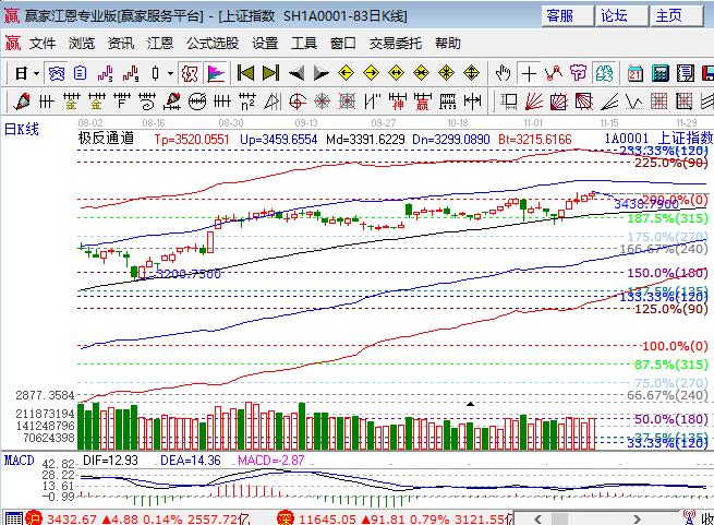 大盤上周五震蕩小漲報收五連陽,深市幾大指數均上漲。板塊方面,保險、釀酒和家電等板塊領漲,煤炭、石油和銀行板塊領跌;題材方向 ,芯片、5G、太陽能及高送預期類次新引領題材,高鐵、雄安和環保等較弱,個股漲跌互現,下跌個股略多于上漲家數,幾大指數成交量均走穩步放量過程。技術方面,滬指日線回踩江恩百分比零度3420后拉升,此線目前多方占優勢,上方拋壓為極反通道強勢外軌線處,各短周期在生命線與外軌線懸空位置,向上看外軌線,向下震蕩則是日線零度位。深成指率先突破強勢外軌線,創業板突破生命線,但對應的周線均遇到阻力,預期震蕩為主,幾大指數配合節奏較好。波段倉位為5成,短線保持2成,3410、3420為日內支撐,3442、3446為日內壓力。僅供參考,不構成任何投資建議。