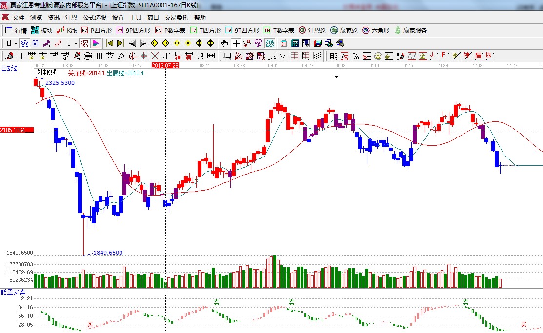 ☆依據(jù)贏家江恩系統(tǒng)能量買賣提示:空頭綠色柱子縮短,等待多頭能量聚集;