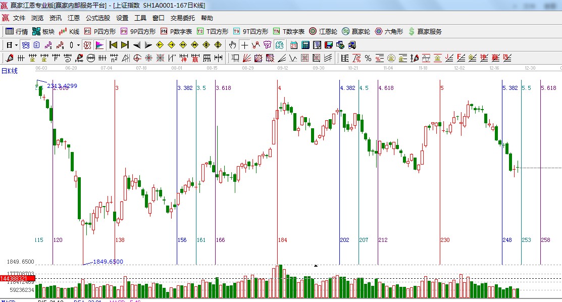 ★依據(jù)贏家江恩系統(tǒng)波段百分比提示:1849點(diǎn)與2444點(diǎn)做分析,下方135度是2072點(diǎn)、120度是2040附近;