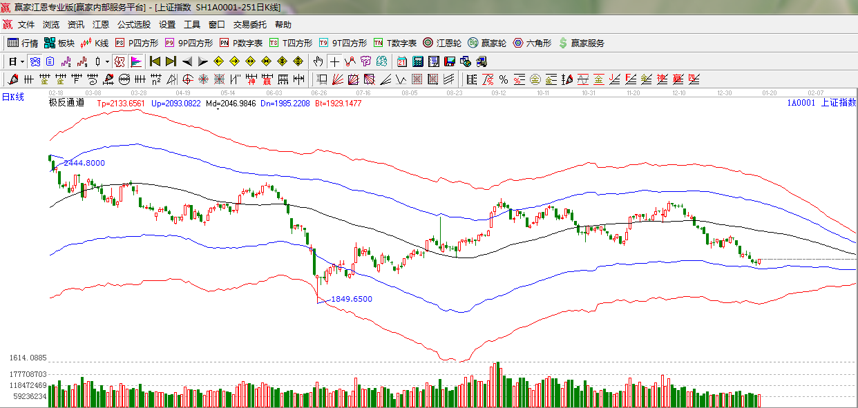 綜上所述:依據贏家江恩技術工具分析得出,時間之窗附近指數在弱勢下軌支撐如期出現探底回升走勢,量能比昨日略微放大,但整體仍處于地量水平,明天關注量能能否持續,否則謹防沖高回落,上方阻力位關注江恩90度2031,,45度2055點,操作方面,可適當提高倉位,謹慎做多,星級風險提示,謹慎做多,